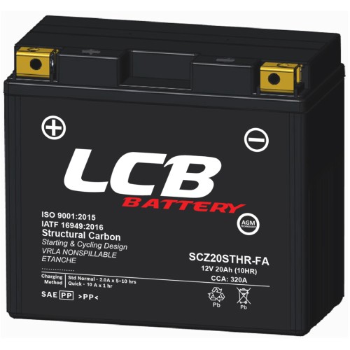 VRLA AGM design with Structural Carbon; Sealing structure of PP materials; High CCA and good starting performance; Fast Re-charging; Maintenance-free design; Low self-discharge; C.O.S. Application