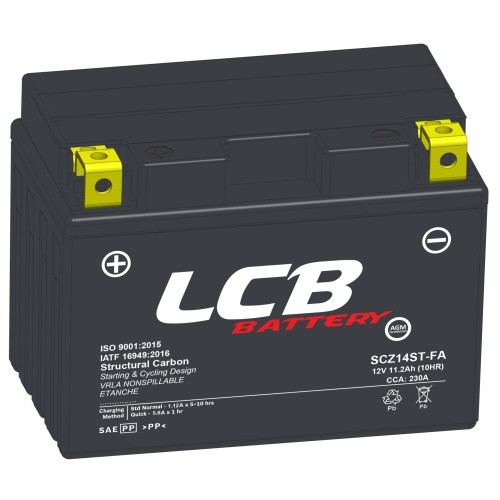 VRLA AGM design with Structural Carbon; Sealing structure of PP materials; High CCA and good starting performance; Fast Re-charging; Maintenance-free design; Low self-discharge; C.O.S. Application